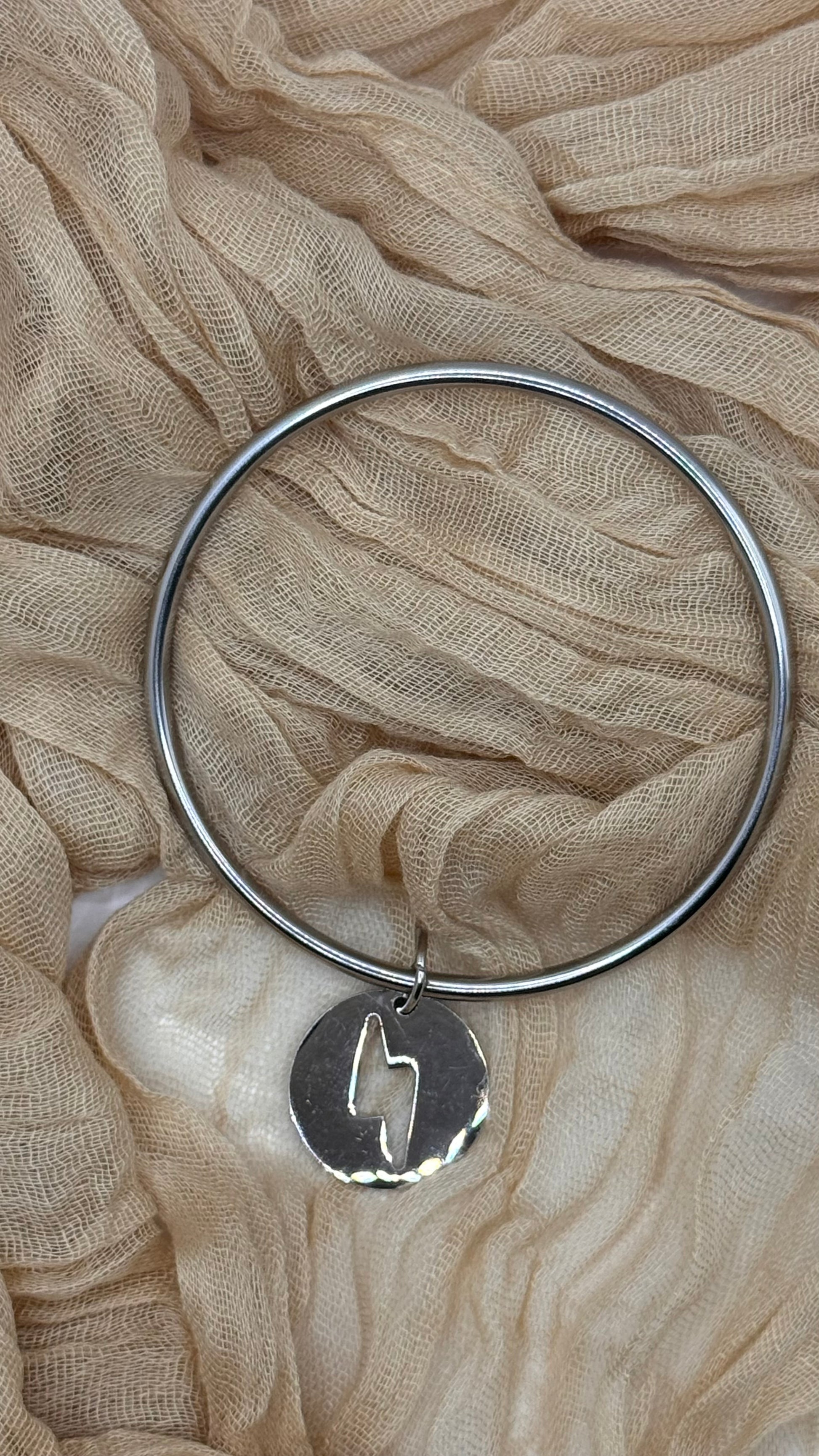 Bracelet jonc avec breloque éclair en acier inoxydable.