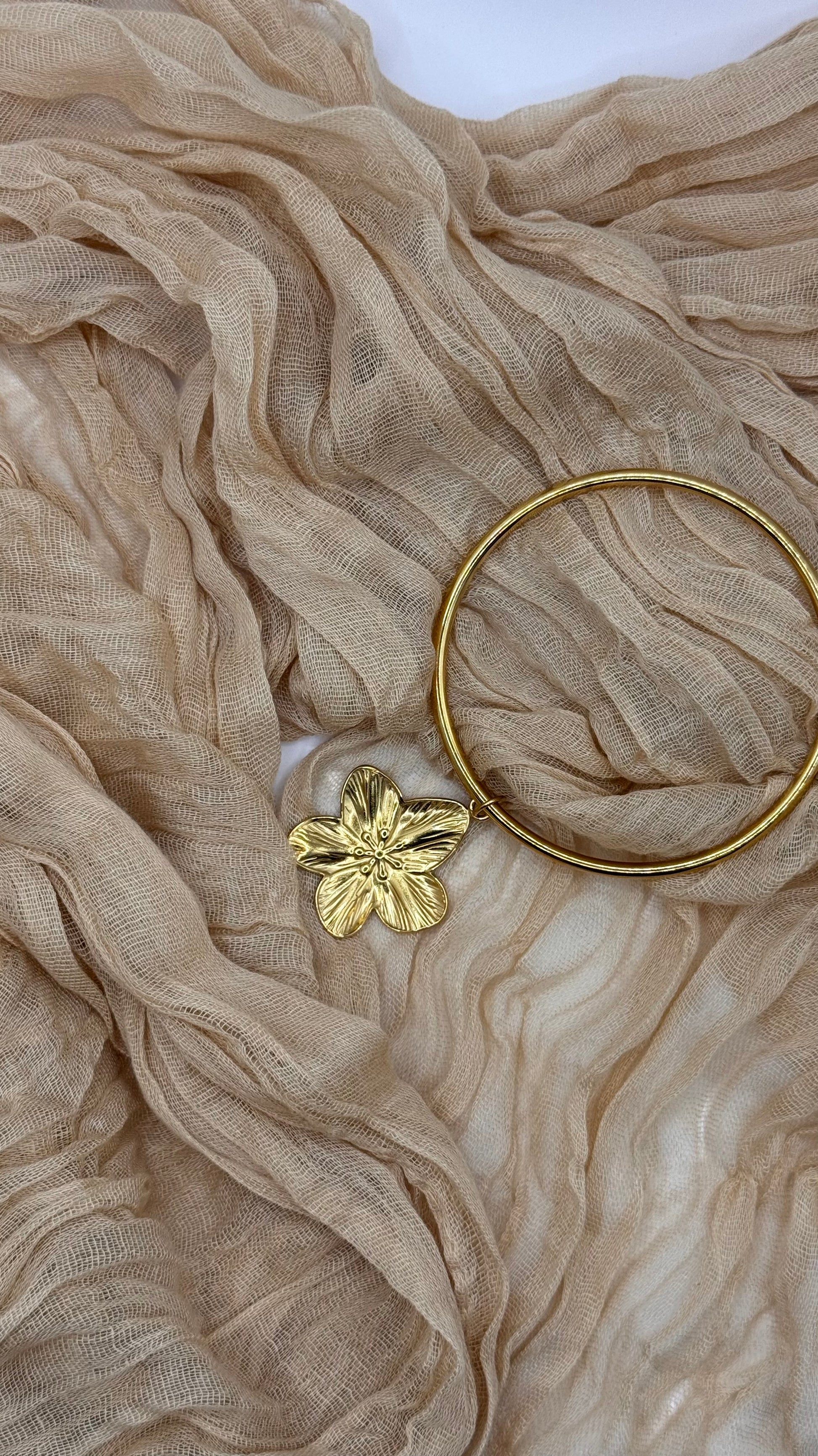 Bracelet jonc avec breloque fleur en acier inoxydable.