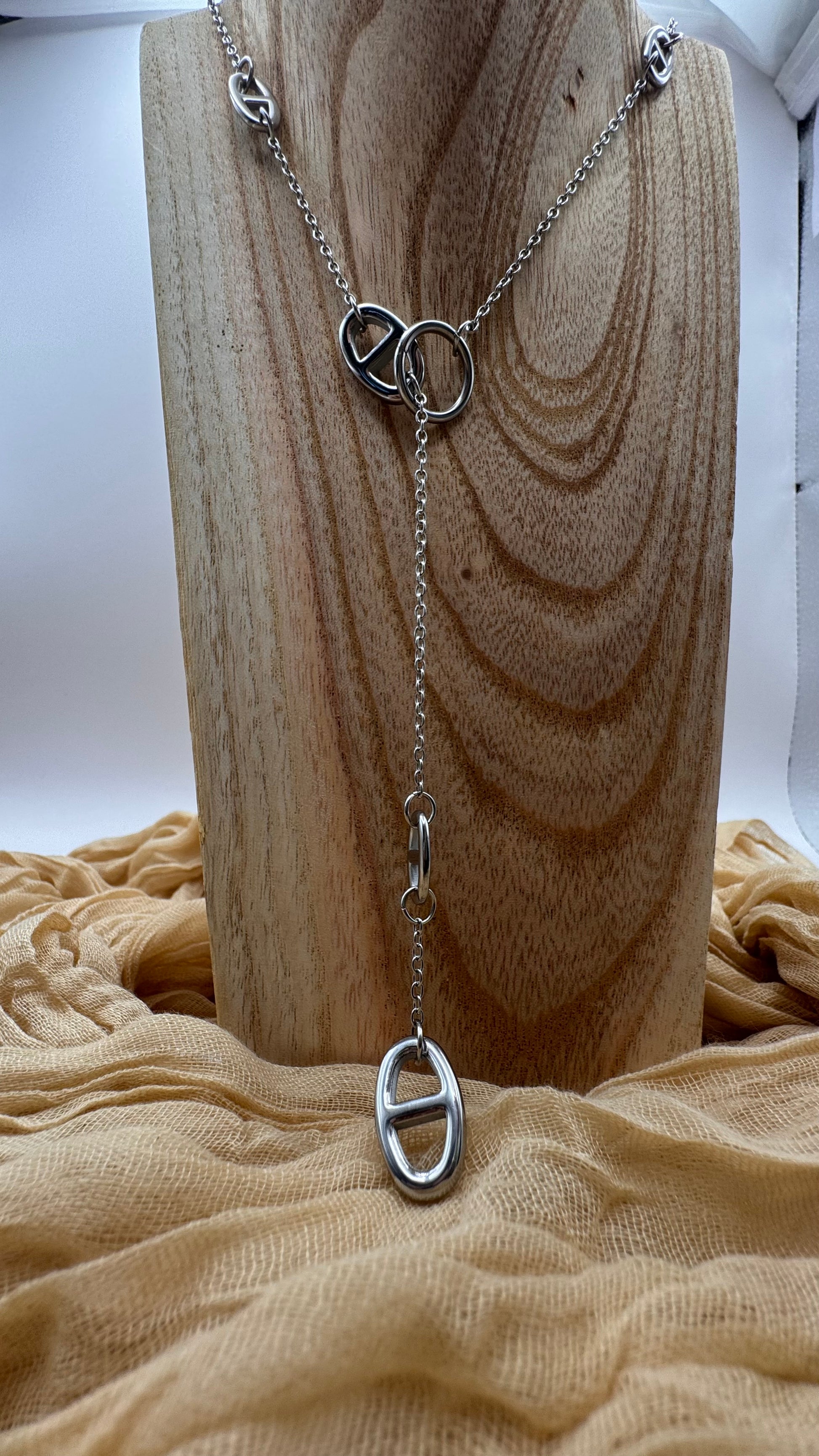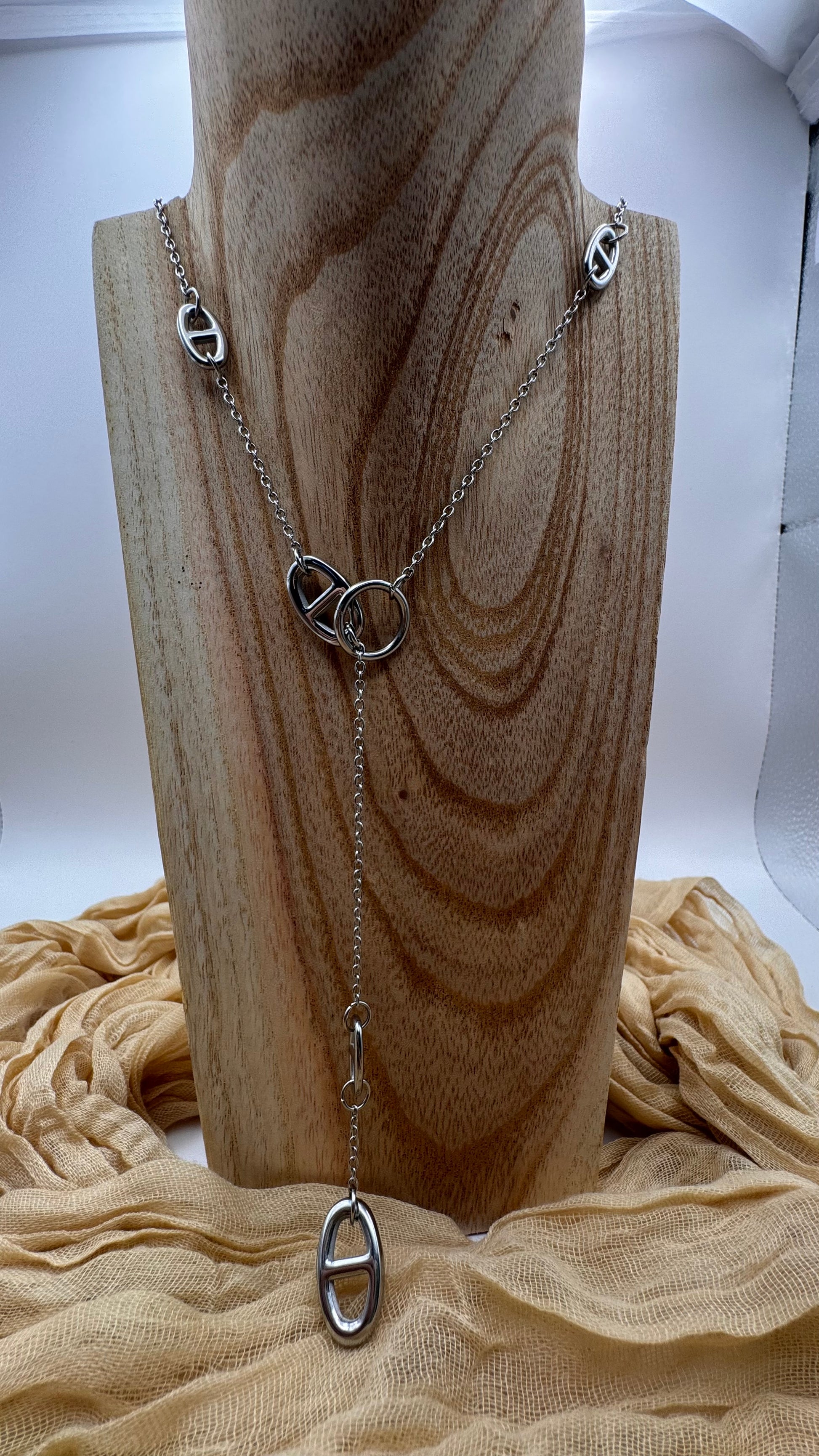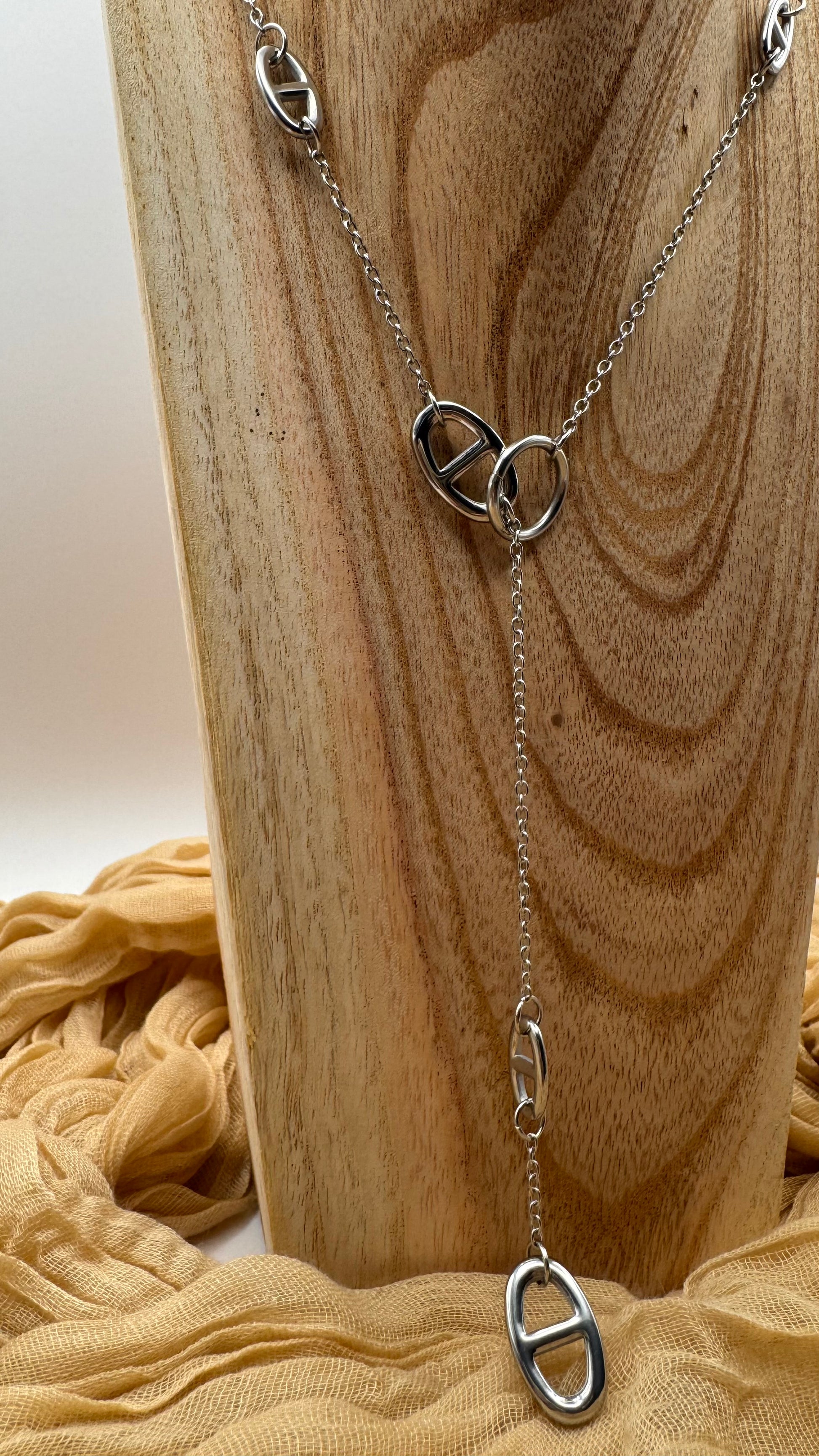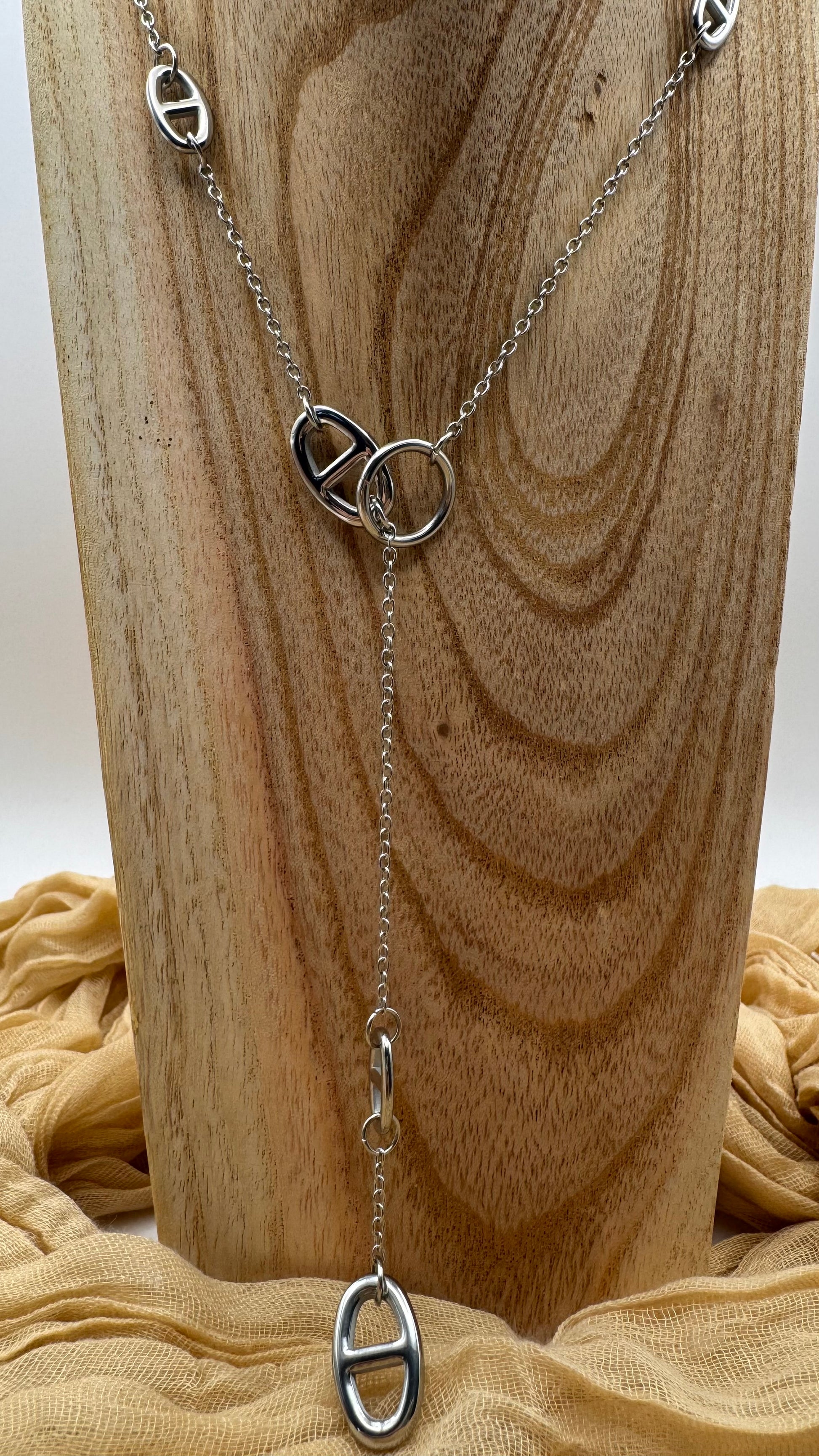 Collier long Y avec maille marine ajustable en acier inoxydable.