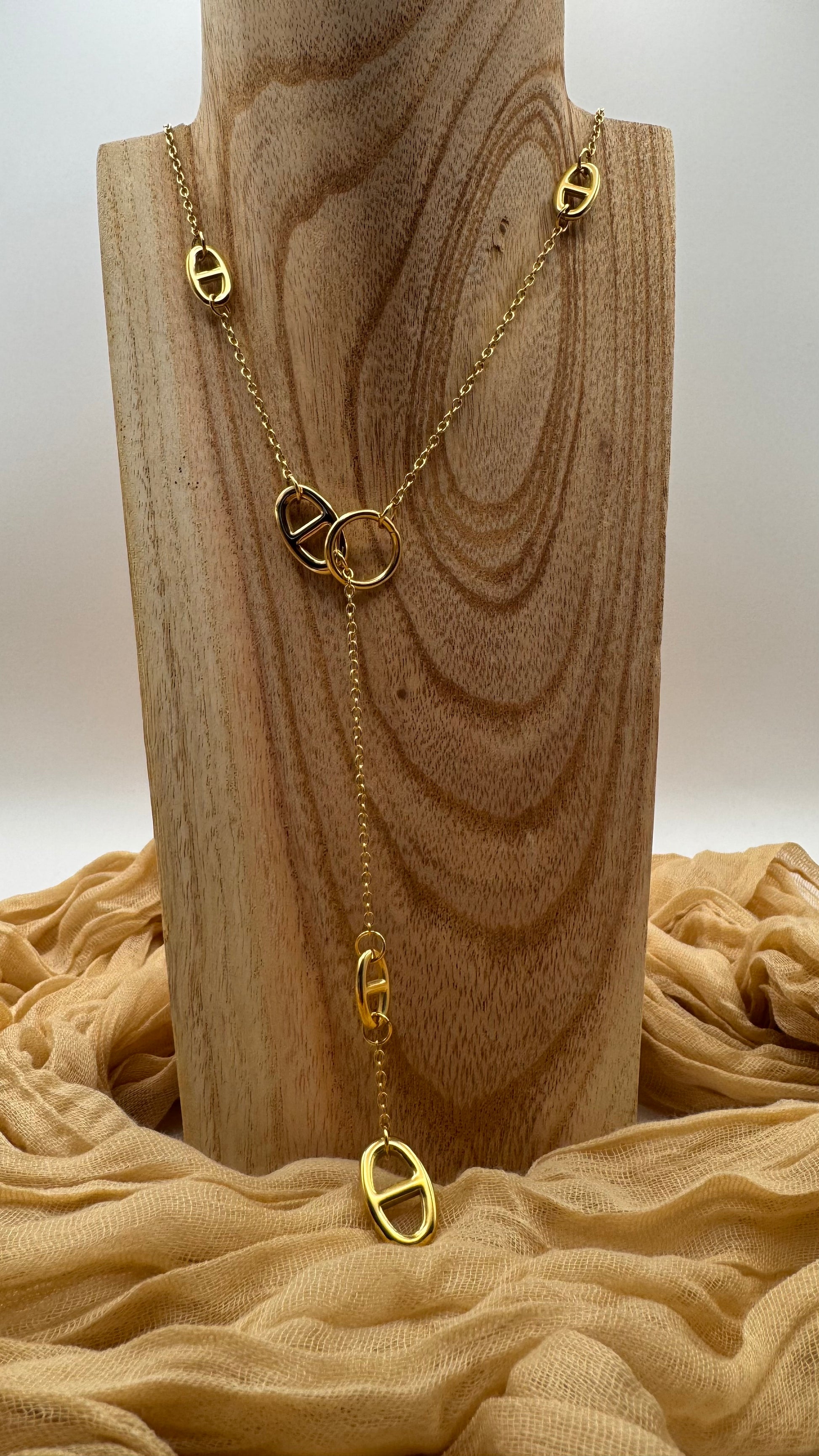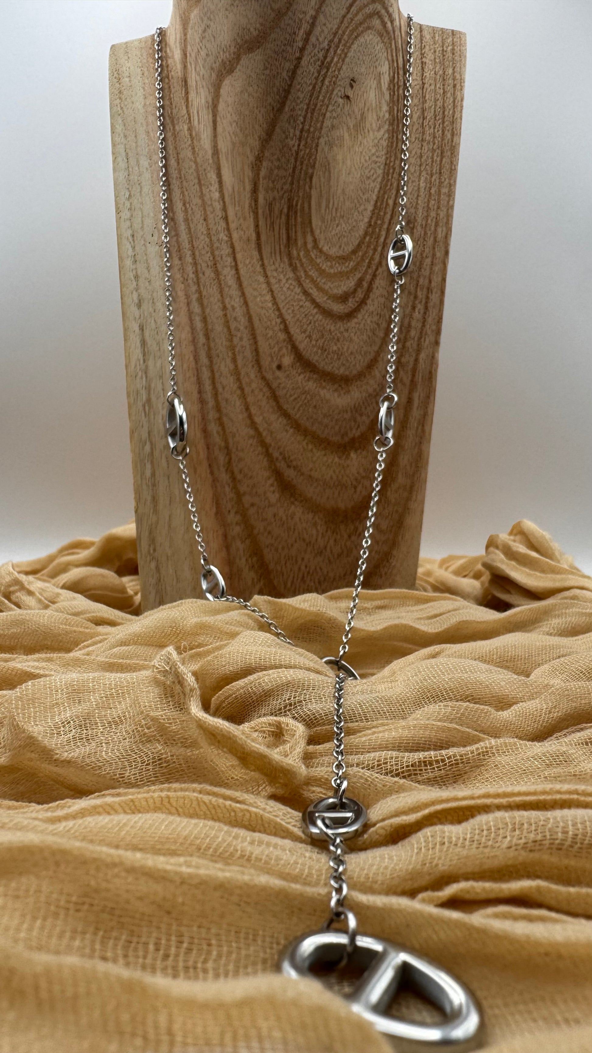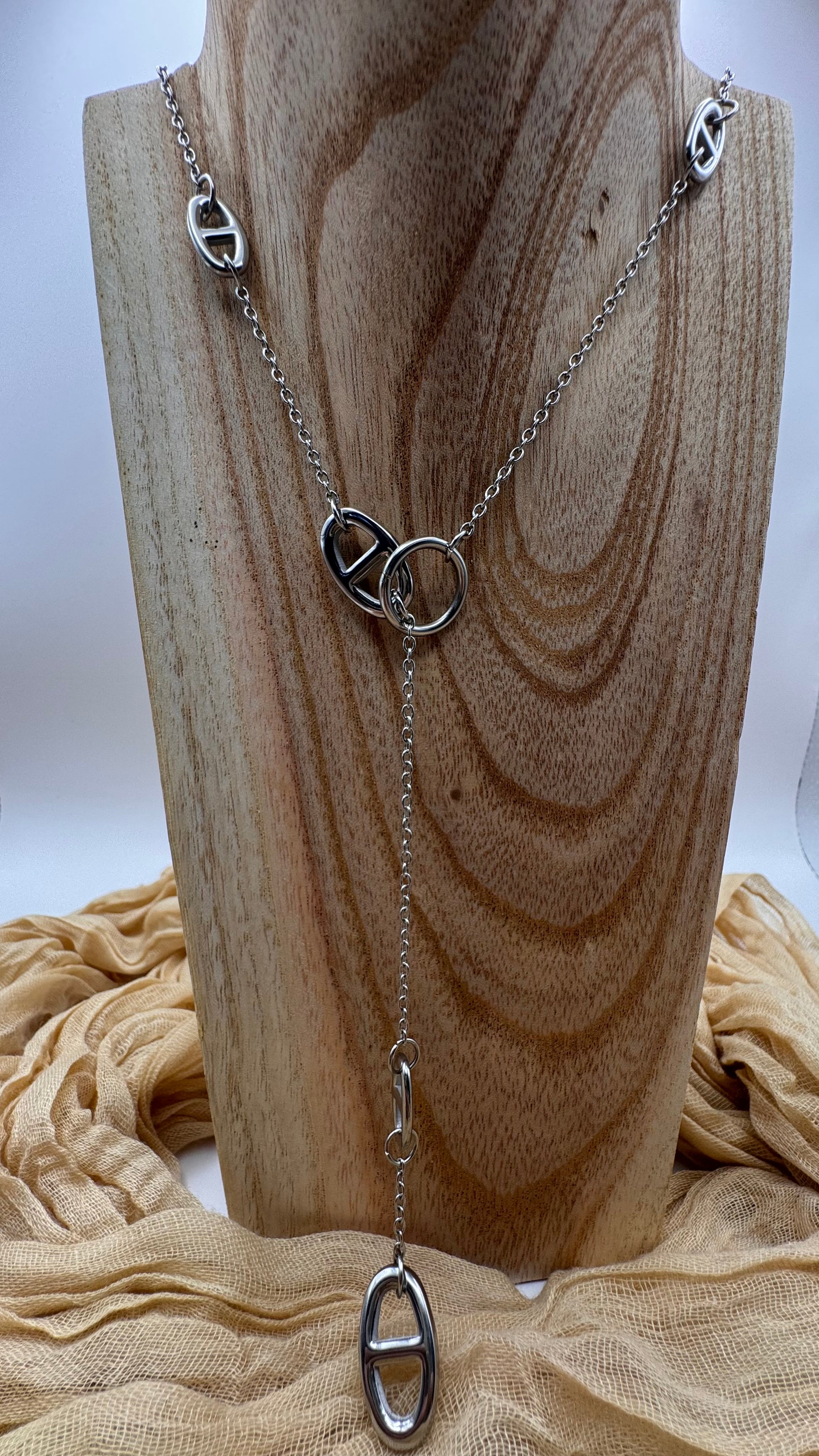 Collier long Y avec maille marine ajustable en acier inoxydable.