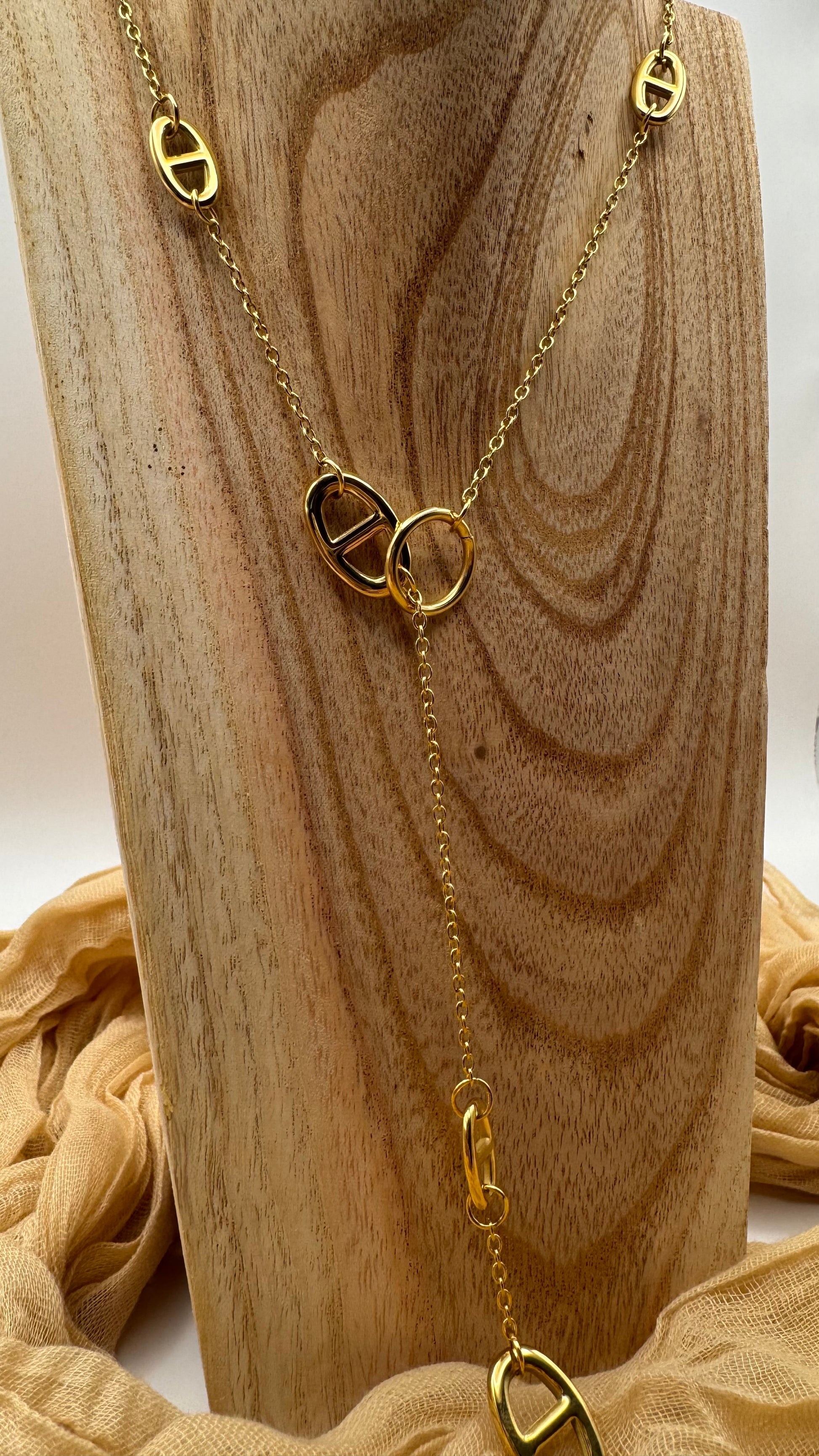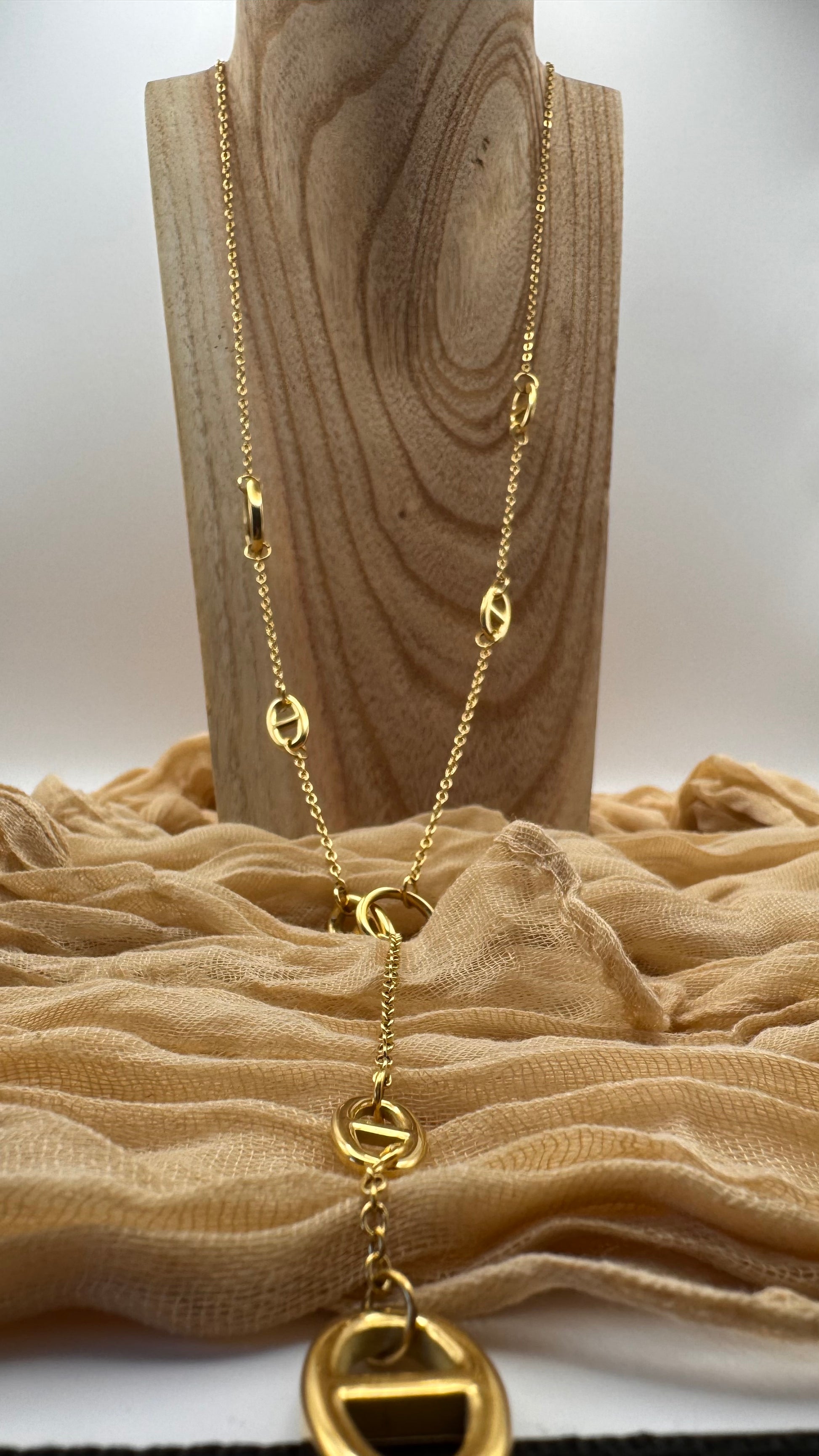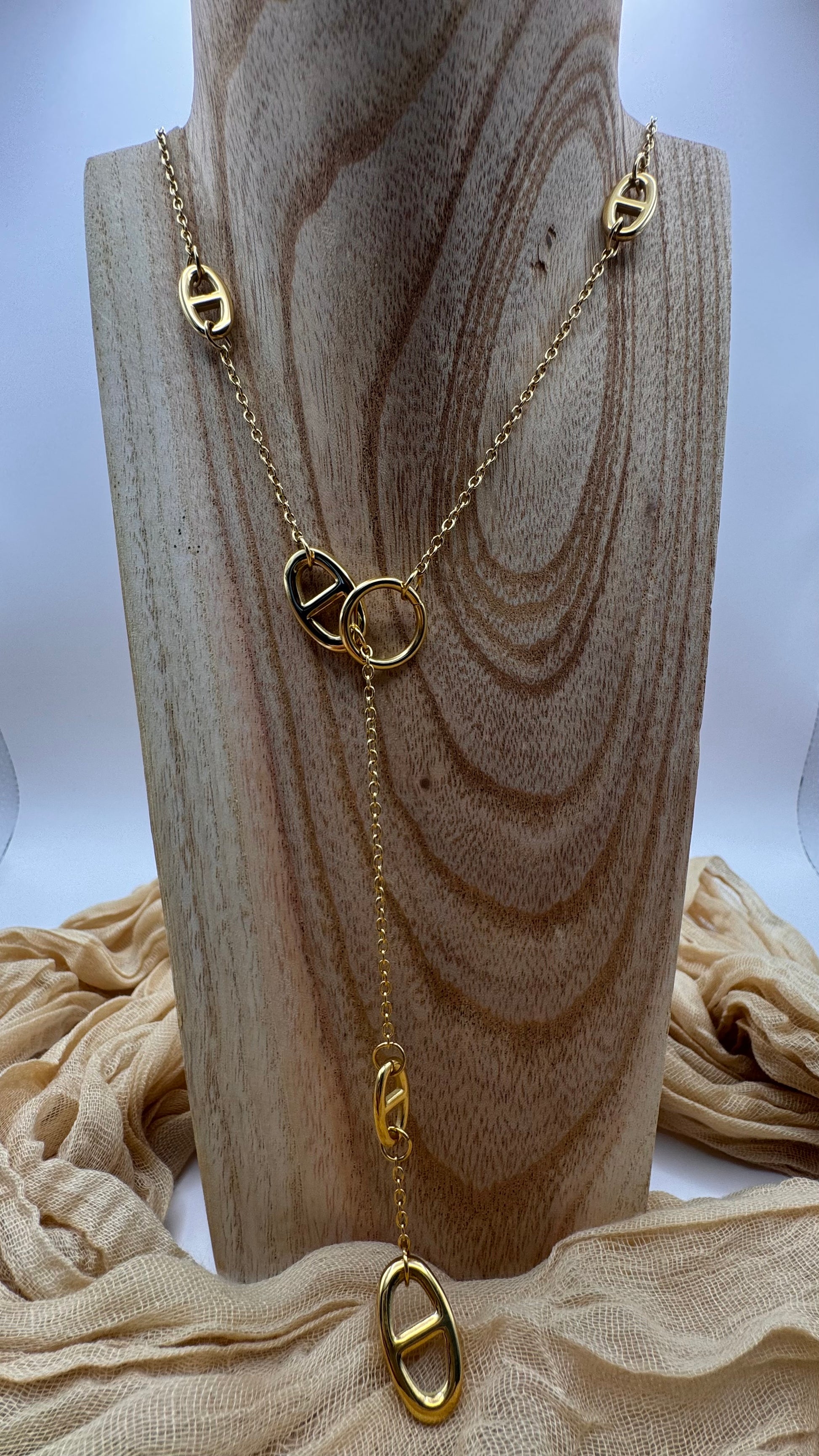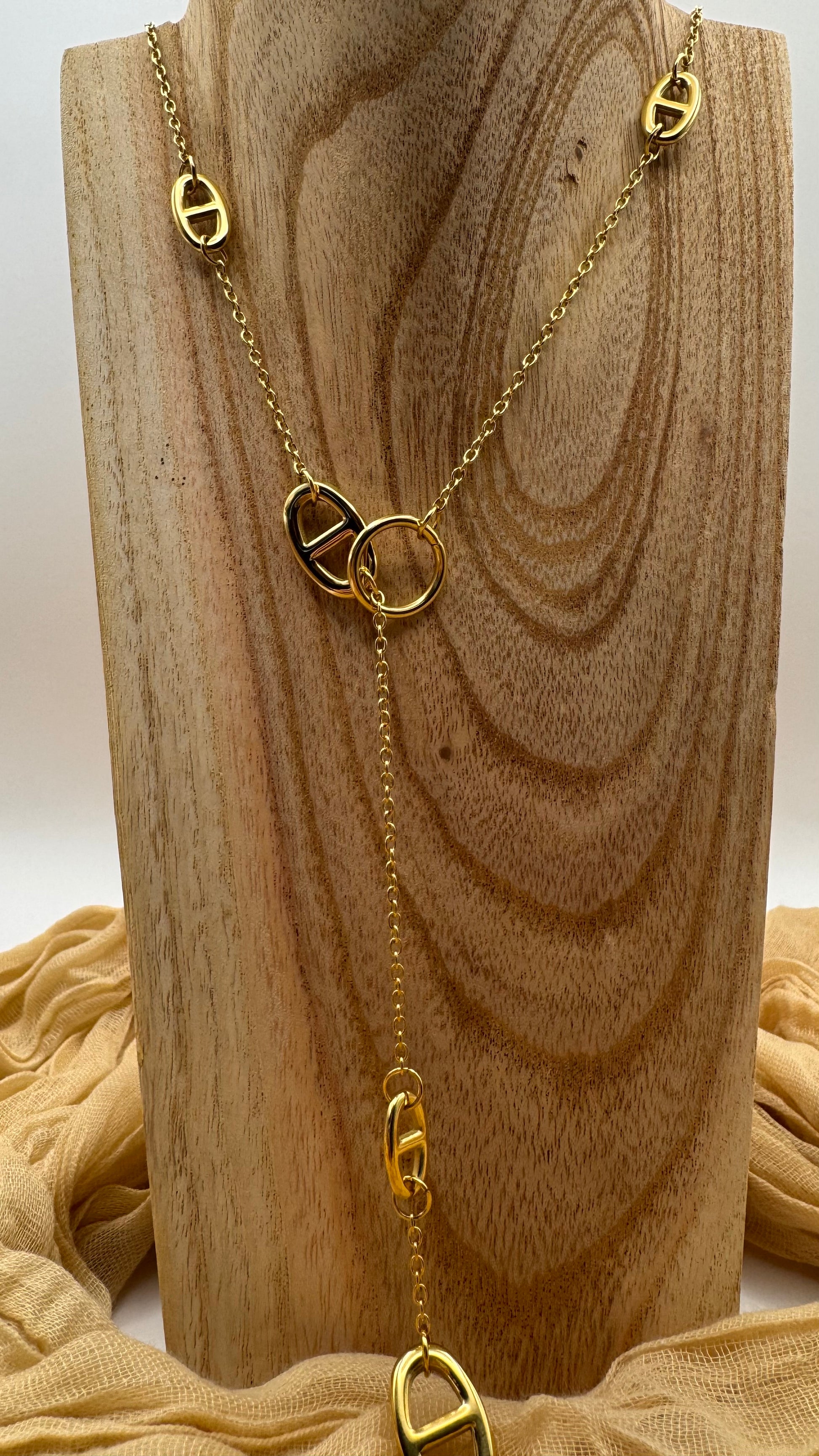 Collier long Y avec maille marine ajustable en acier inoxydable.