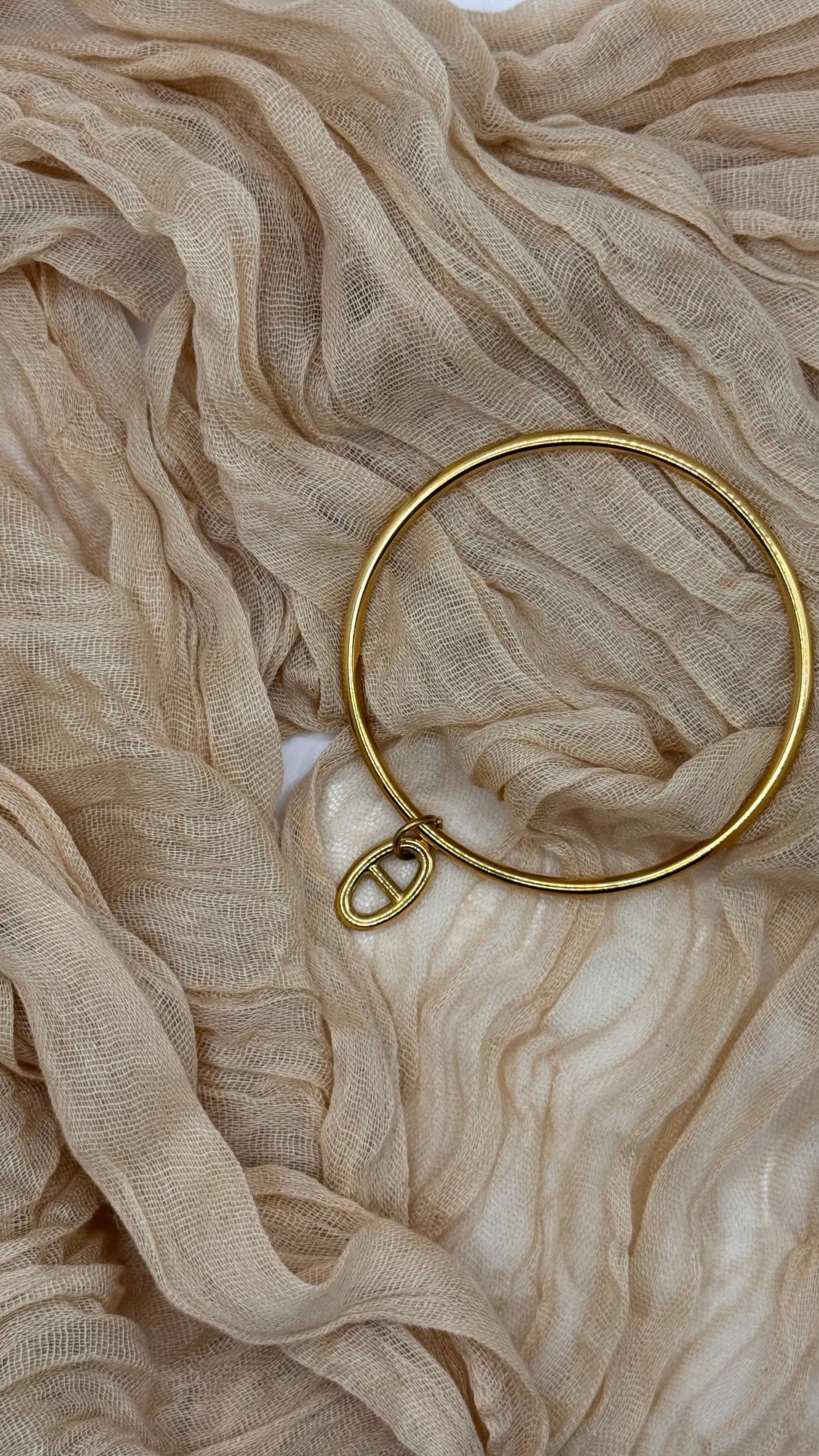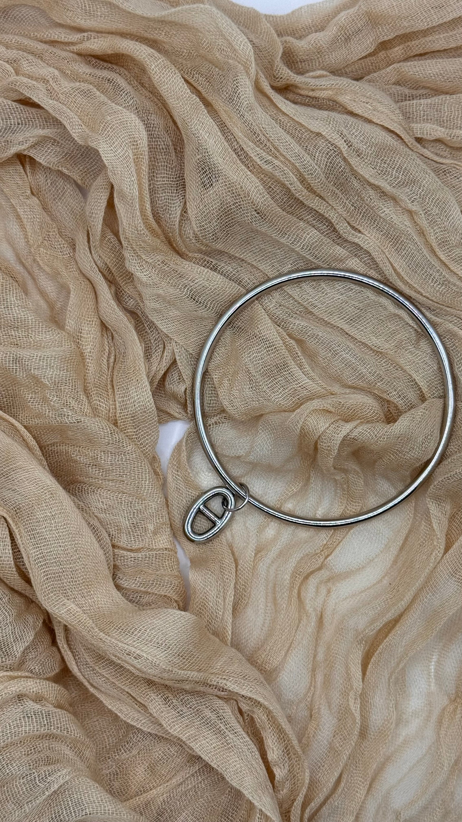 Bracelet jonc avec breloque maille marine en acier inoxydable.