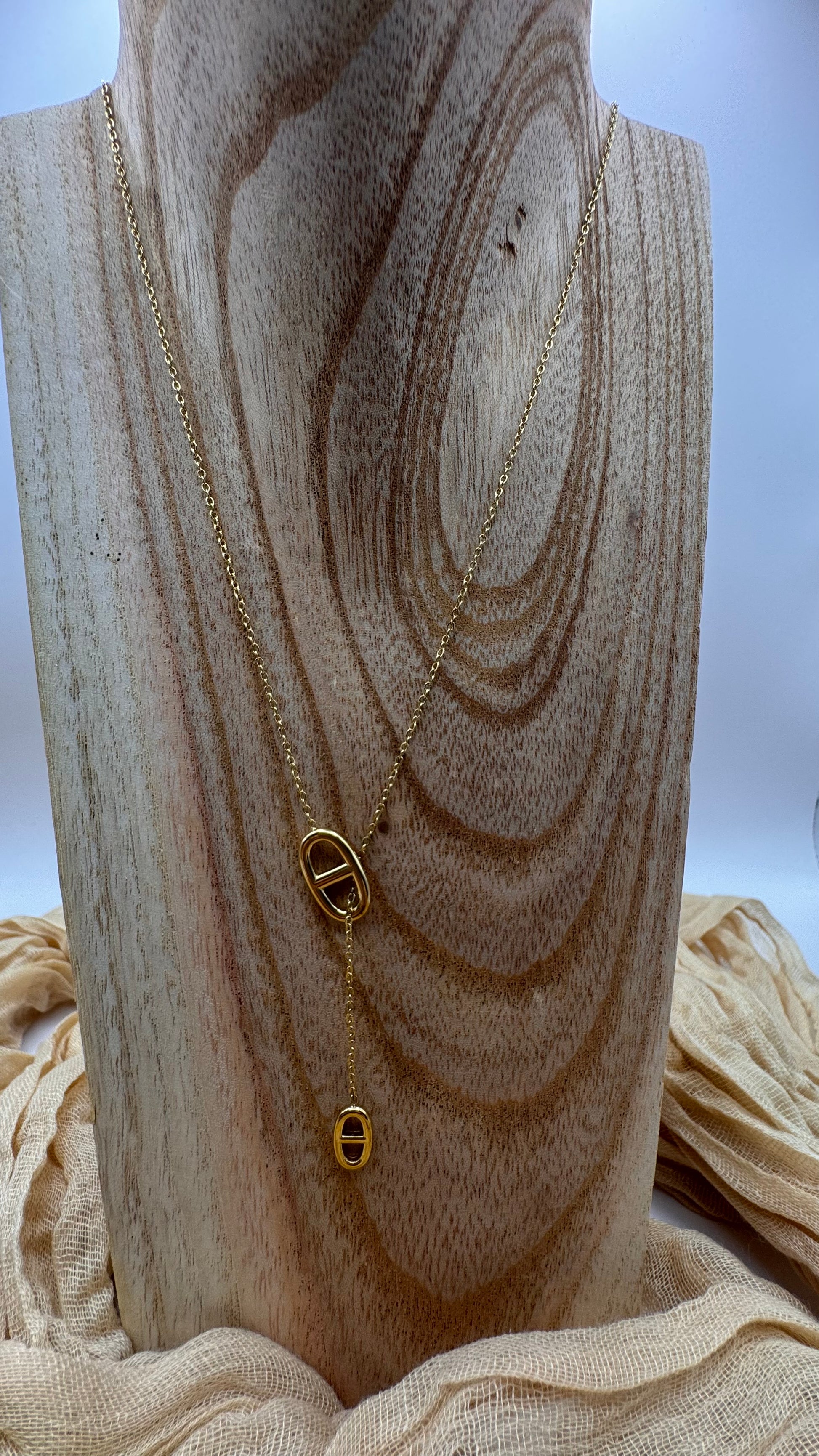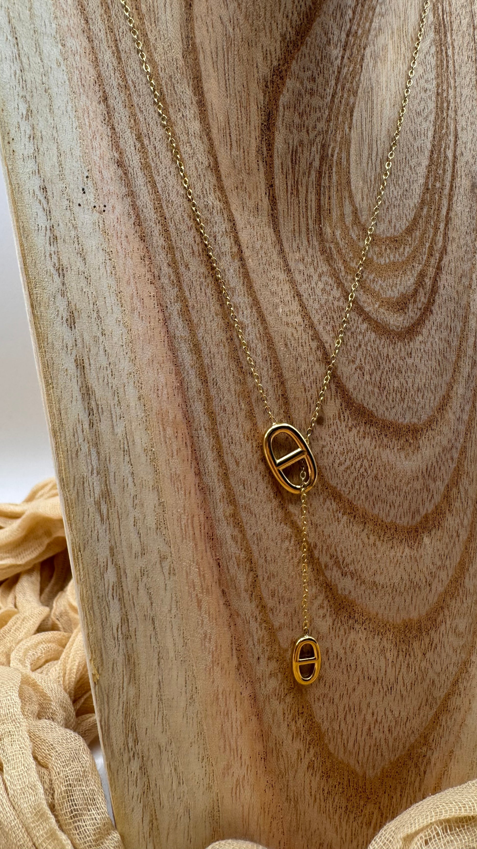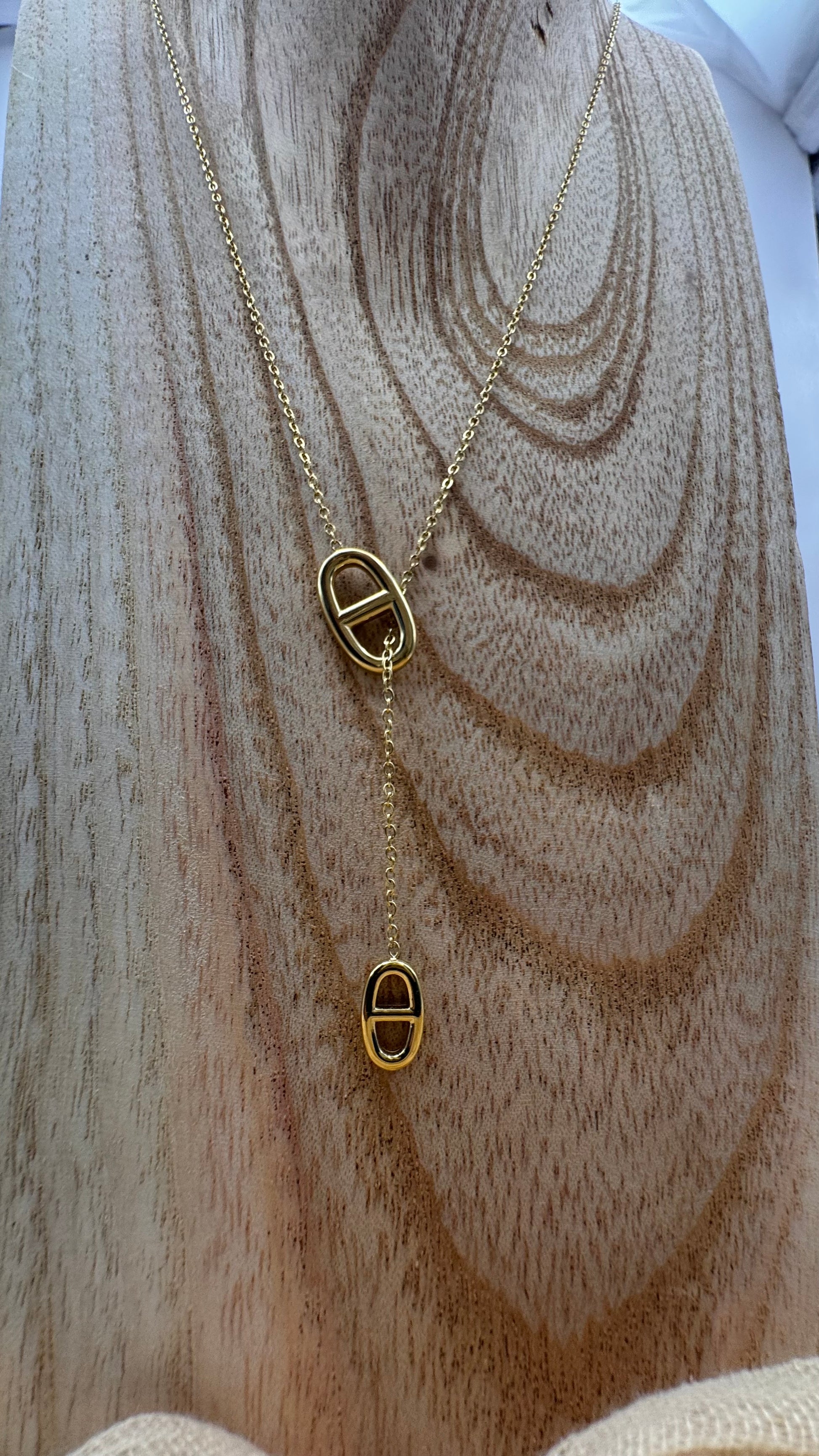 Collier Y avec pendentif marine ajustable en acier inoxydable.